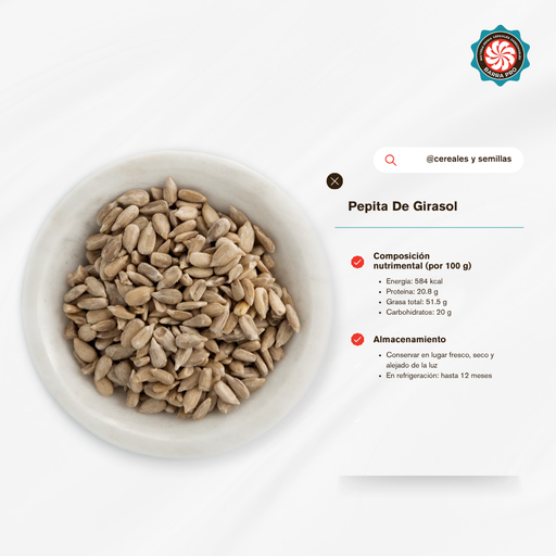 Barra ProPrecio original $ 90.00 - Precio original $ 90.00Precio original$ 90.00$ 90.00 - $ 90.00Precio actual $ 90.00| /En stockPepita de Girasol 1 Kg A Granel. Semilla premium rica en proteínas, fibra y grasas saludables. Ideal para repostería, ensaladas, salsas y platillos...